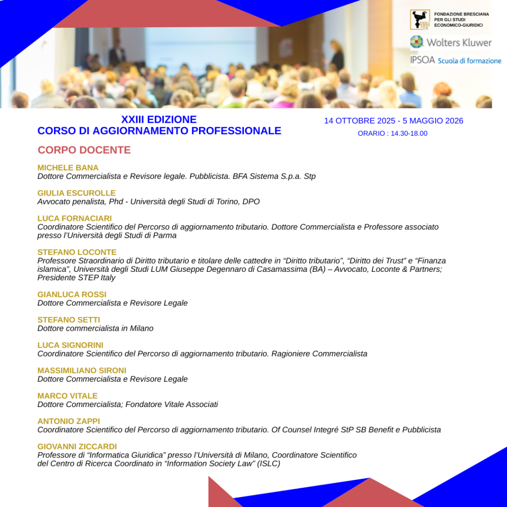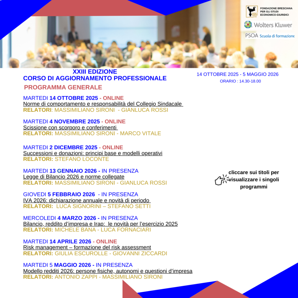 Corso di Aggiornamento Professionale ottobre 2025-maggio 2026 (XXIII edizione)