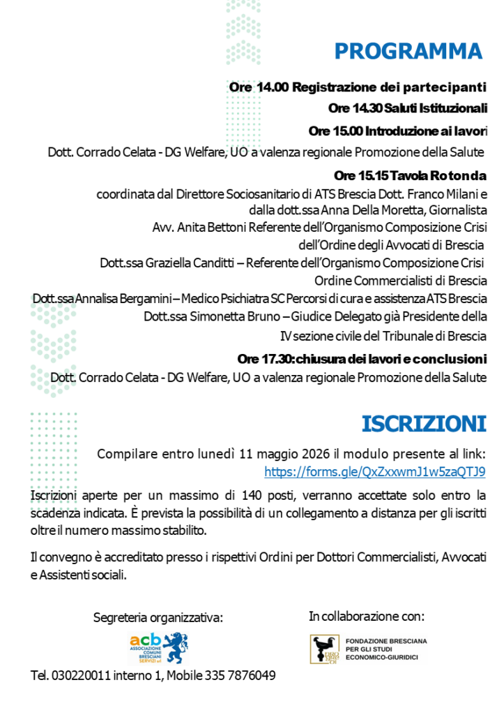 - in presenza presso SEDE EVENTO ATS Brescia, Viale Duca degli Abruzzi, Brescia