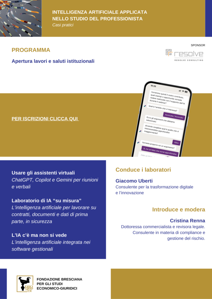 Bonifico bancario intestato a: Fondazione Bresciana Studi Economico-Giuridici
