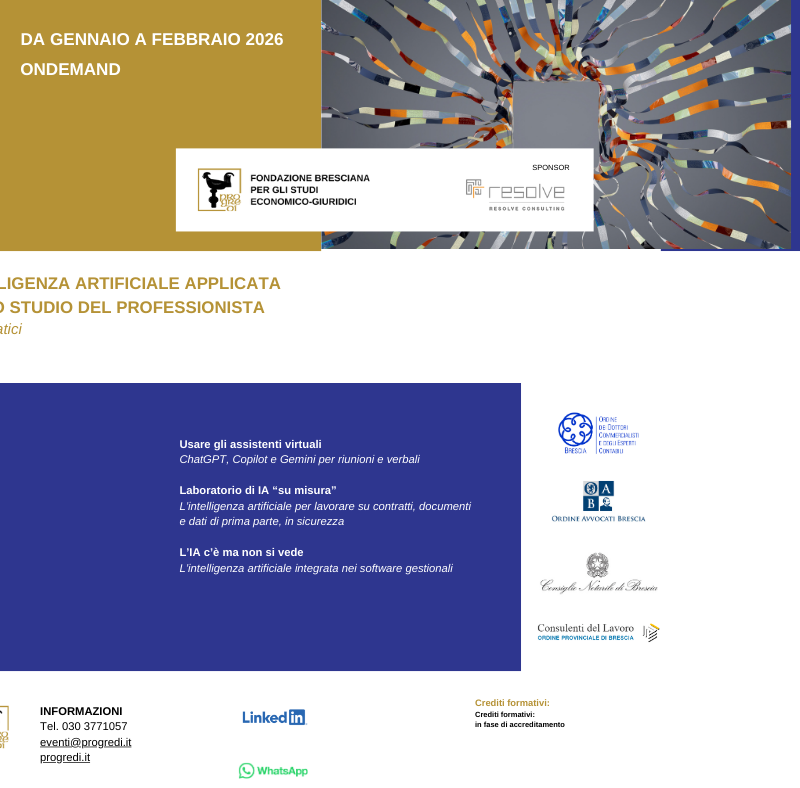 INTELLIGENZA ARTIFICIALE – on demand da gennaio a febbraio 2026