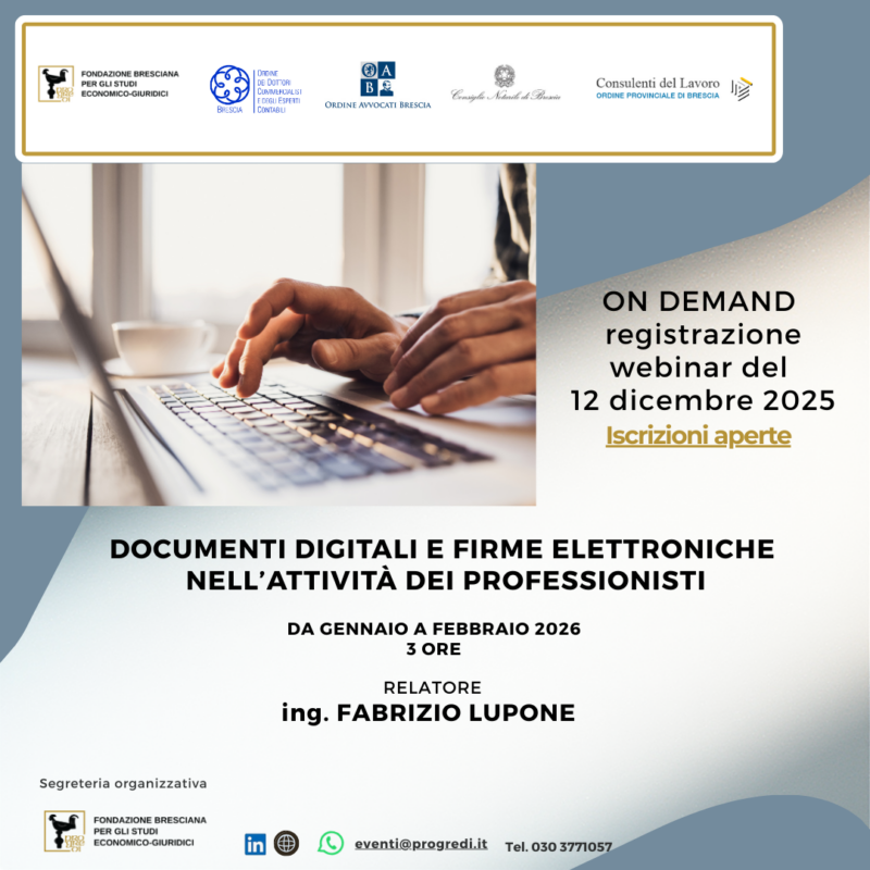 DOCUMENTI DIGITALI E FIRME ELETTRONICHE NELL’ATTIVITÀ DEI PROFESSIONISTI on demand – da gennaio a febbraio 2026