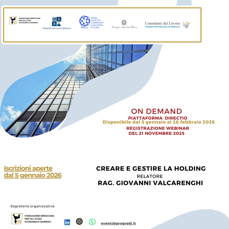 CREARE E GESTIRE LA HOLDING on demand – da gennaio a febbraio 2026