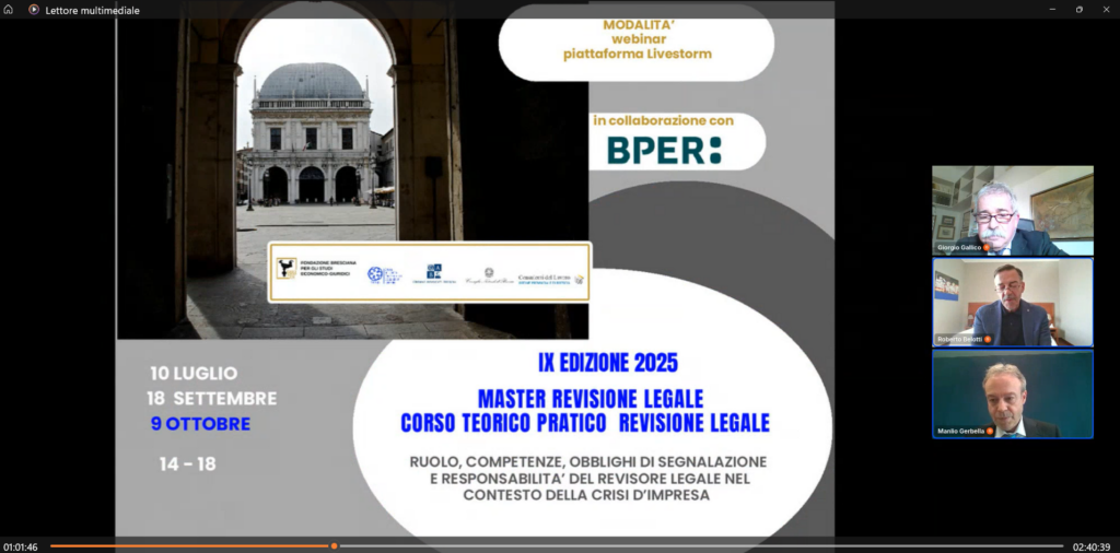 L’ottava edizione del master di revisione legale, nella sua collaudata veste di corso teorico pratico, si incentra sulla documentazione e le modalità di redazione del lavoro svolto dal revisore contabile indipendente secondo il principio di revisione Isa Italia 230 in funzione delle linee guida proposte dal CNDCEC nell’aprile 2008. Viene approfondito anche il controllo di qualità trattato dal principio di revisione internazionale ISQM1 nonché i principi etici, l’accettazione e lo svolgimento dell’incarico da parte del revisore (webinar del 10/07). La conclusione del lavoro e la valutazione degli errori, esclusi quelli chiaramente trascurabili, la loro correzione e la ricaduta sul bilancio degli errori non corretti nell’approccio metodologico alla revisione delle PMI costituisce parte integrante del terzo incontro (18/09) mentre nell’intervento on-line del 16/10, viene svolto un caso concreto di revisione applicato a una PMI in cui verrà esaminata compiutamente la metodologia, la pianificazione e lo sviluppo della complessa attività di revisione legale.