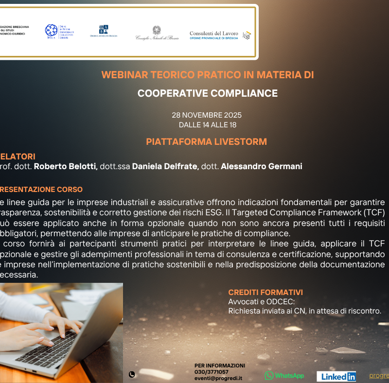 intestate a professionisti/Stp iscritti agli Ordini di Brescia (soci della Fondazione).