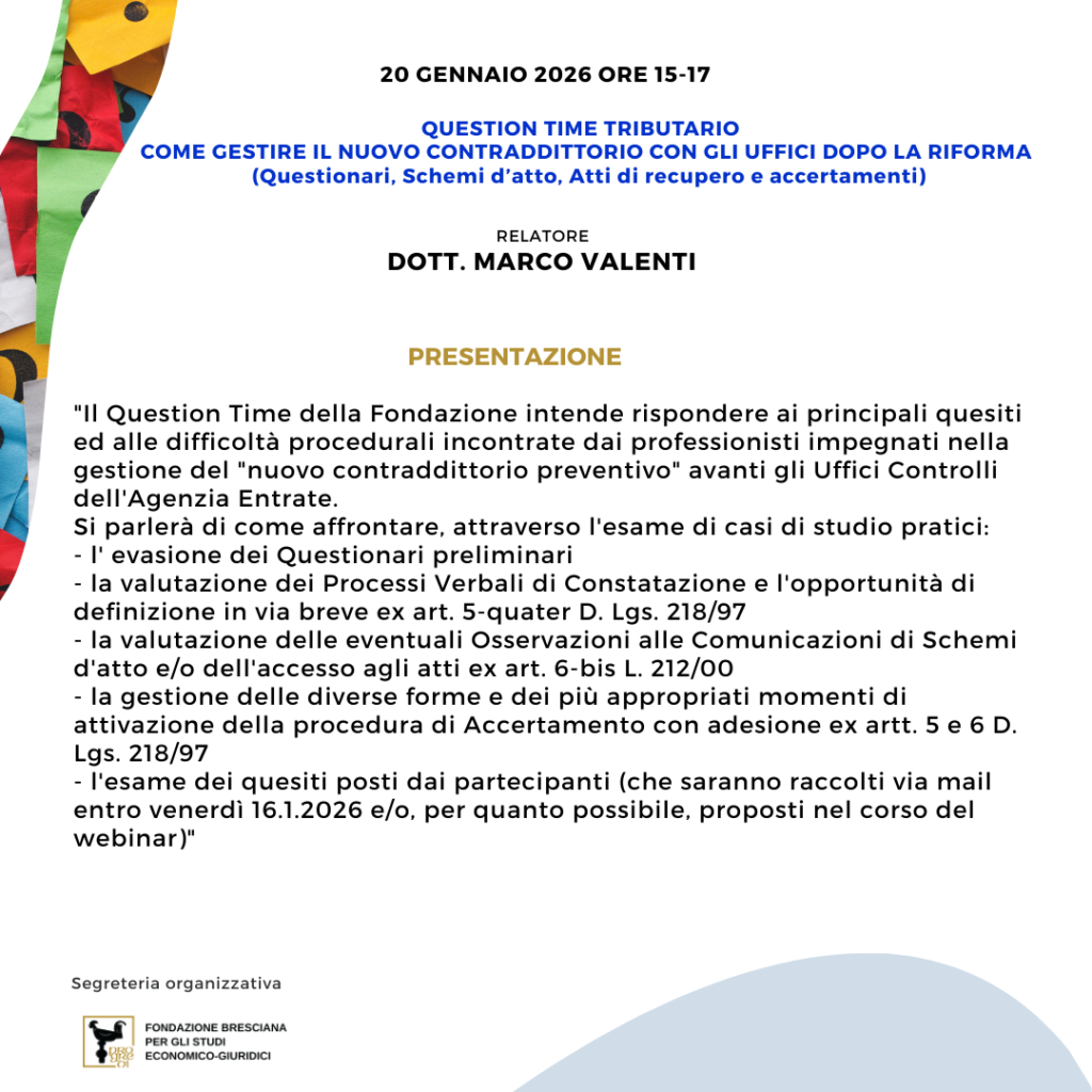 QUESTION TIME TRIBUTARIO – COME GESTIRE IL NUOVO CONTRADDITTORIO CON GLI UFFICI  DOPO LA RIFORMA